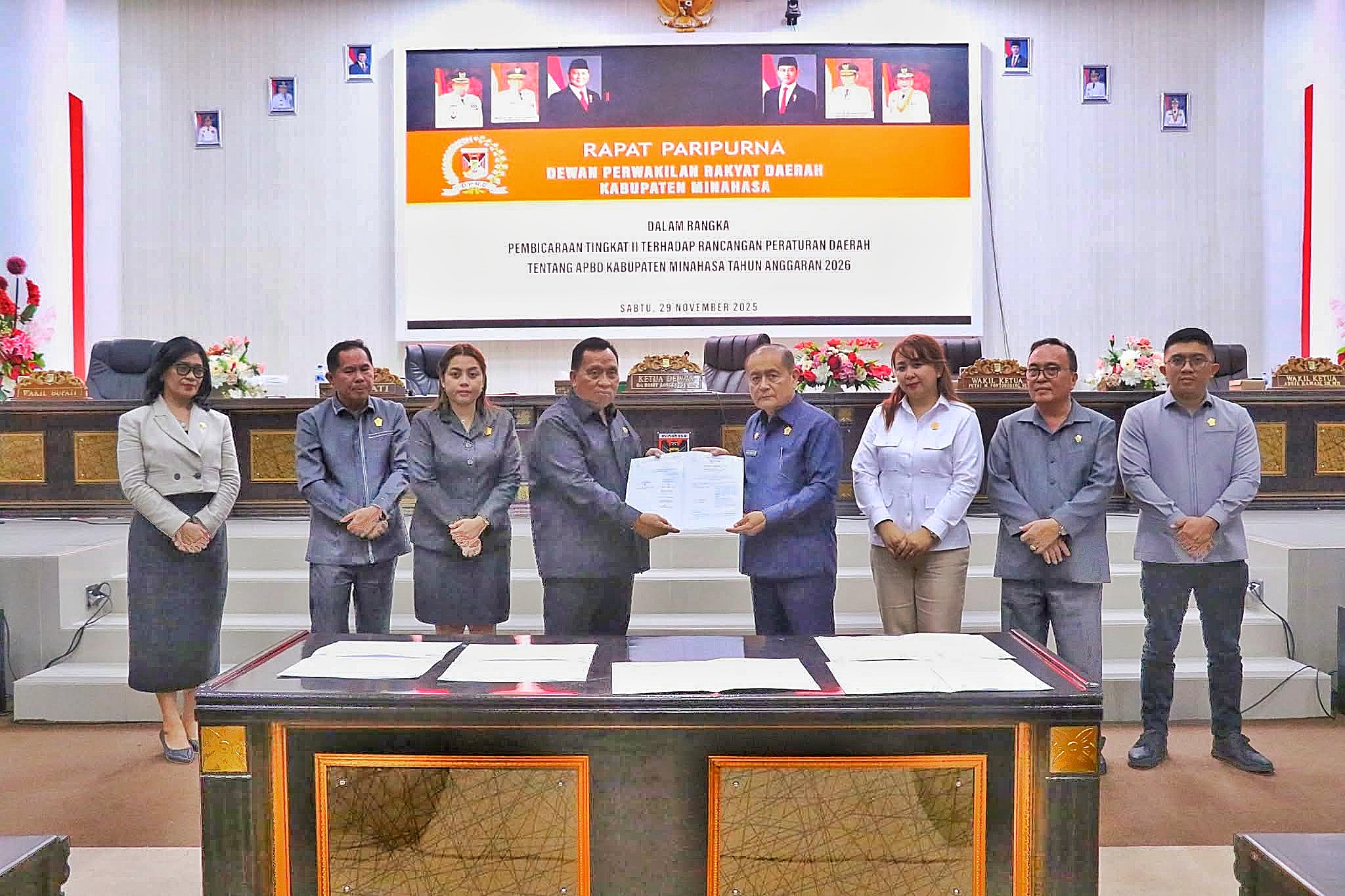 Pengesahan itu dilakukan dalam Rapat Paripurna yang dipimpin Ketua DPRD Minahasa Robby Longkutoy didampingi Wakil Ketua Putri Pontororing dan Adrie Kamasi serta Sekretaris DPRD Riany Suwarno, Sabtu (29/11/2025).