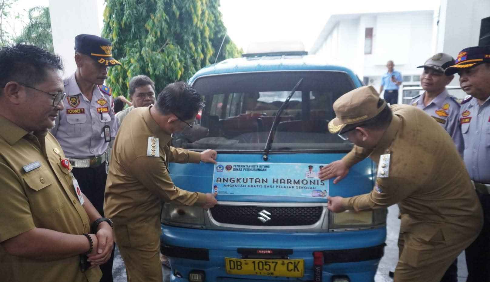 ESN, Bitung – Pemerintah Kota Bitung mulai menghapus hambatan transportasi bagi pelajar. Wali Kota Hengky Honandar melepas puluhan armada Angkutan Harmonis program transportasi gratis bagi siswa di seluruh kota langsung dari lobi kantornya, Senin pagi, 11 Agustus 2025.