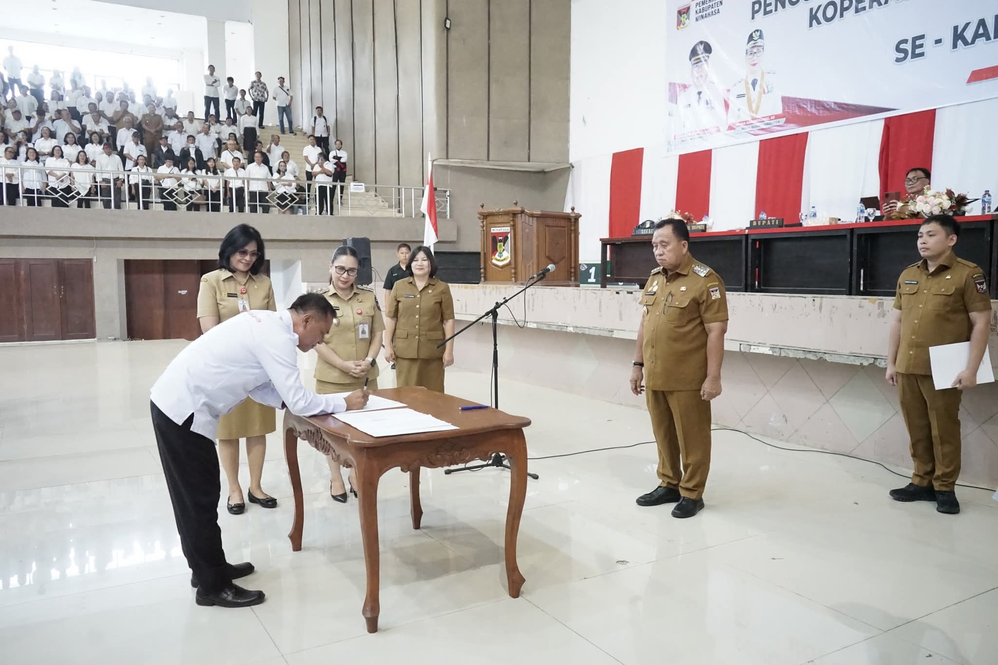 ESN, Tondano – Pengurus dan pengawas Koperasi Desa/Kelurahan Merah Putih (KDKMP) se-Kabupaten Minahasa secara resmi dilantik, Selasa (18/11/2025) di Gedung Wale Ne Tou, Tondano.