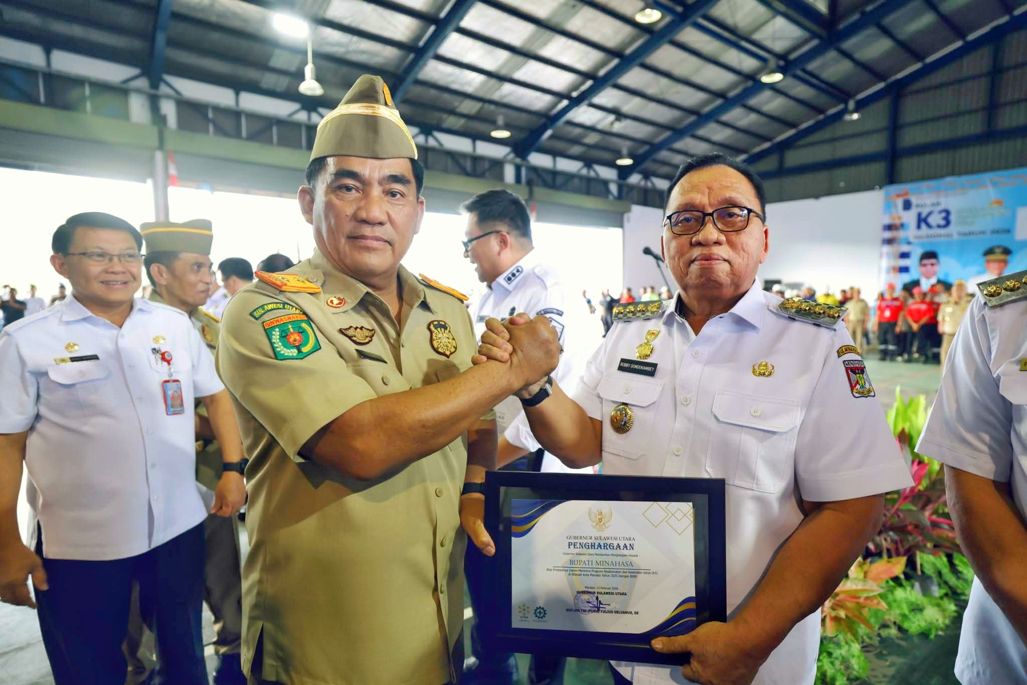 ESN, Bitung – Bupati Minahasa Robby Dondokambey (RD) dianugerahi penghargaan Keselamatan dan Kesehatan Kerja (K3) oleh Gubernur Sulawesi Utara, Yulius Selvanus.