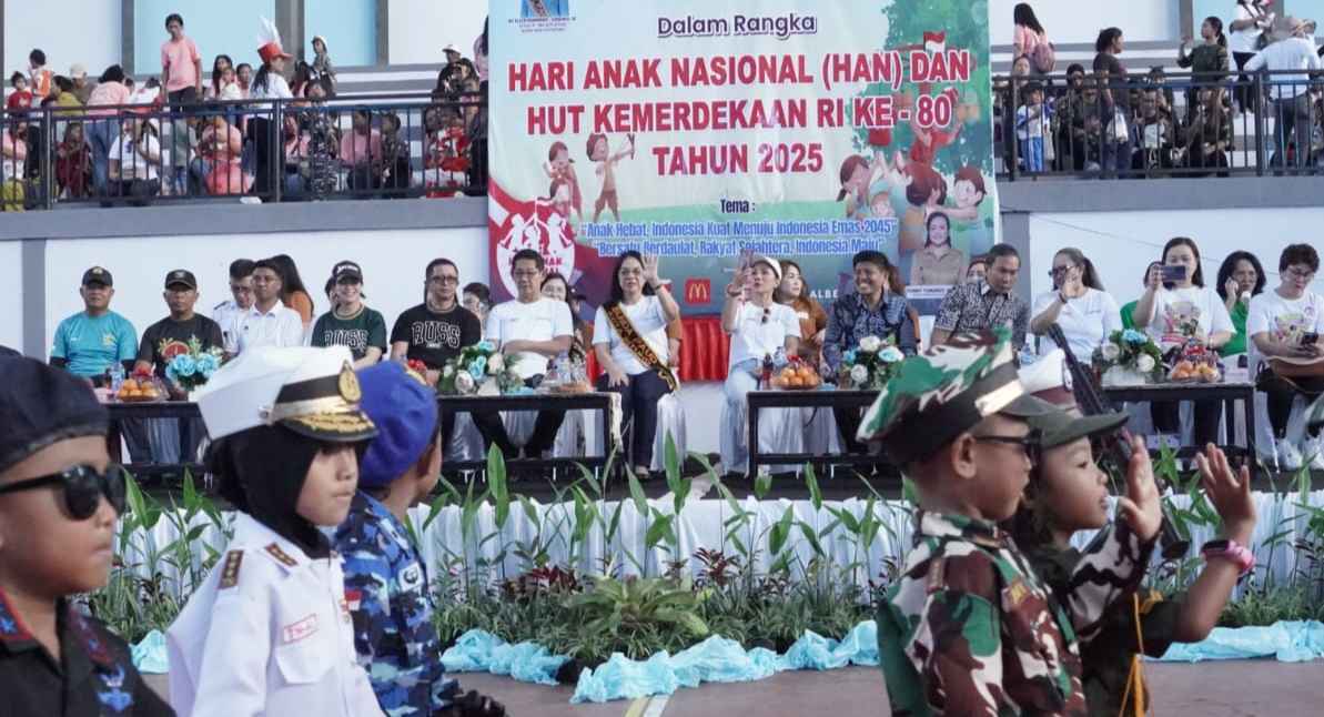 ESN, Bitung — Stadion Duasudara berubah jadi lautan warna-warni, Rabu (20/8), ketika ratusan anak usia dini tumpah ruah dalam kegiatan Gebyar PAUD. Gelak tawa, yel-yel ceria, hingga lomba penuh keriangan mewarnai peringatan Hari Anak Nasional yang dirangkai dengan HUT ke-80 Kemerdekaan Republik Indonesia.