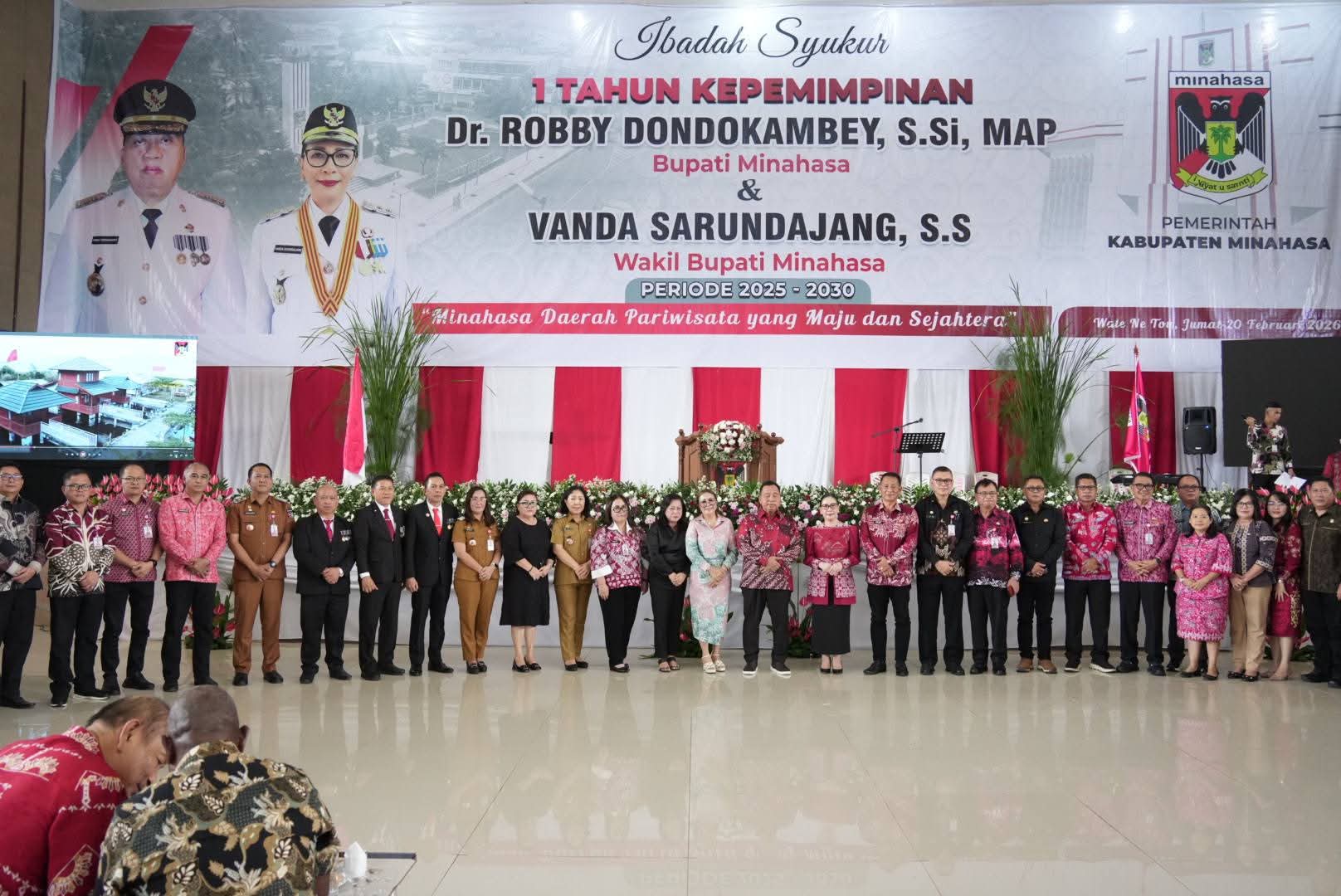 Momentum satu tahun kepemimpinan tersebut ditandai dengan Ibadah Syukur yang digelar di Wale Ne Tou, Tondano, Jumat (20/2/2026).