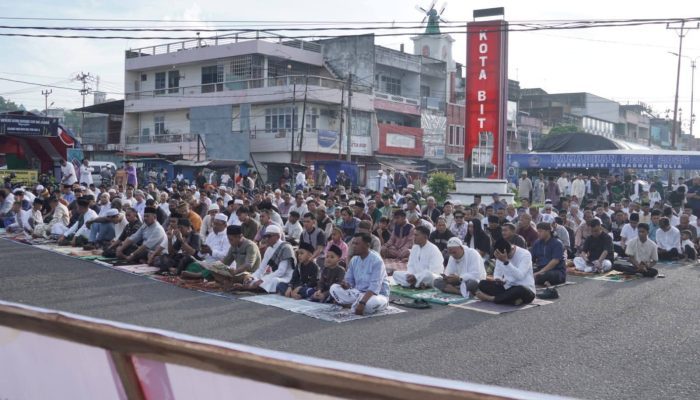 ESN, Bitung – Suasana pagi di pusat Kota Bitung, Sabtu (21/03/2026), dipenuhi nuansa haru dan kebahagiaan. Ribuan umat Muslim memadati lokasi pelaksanaan Sholat Idul Fitri 1 Syawal 1447 Hijriah untuk bersama-sama menunaikan ibadah setelah sebulan penuh menjalani puasa Ramadhan.