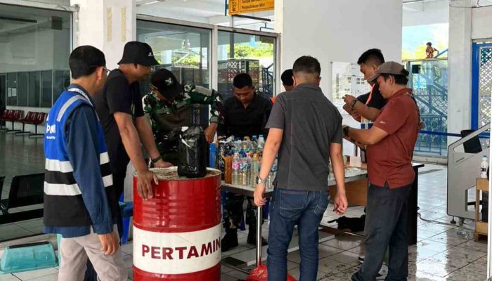 Dalam pemeriksaan tersebut, petugas gabungan menggagalkan upaya penyelundupan puluhan botol minuman keras ilegal jenis cap tikus. Barang tanpa pemilik itu terdeteksi melalui mesin X-Ray dan langsung diamankan.