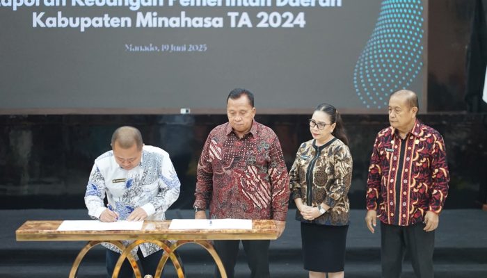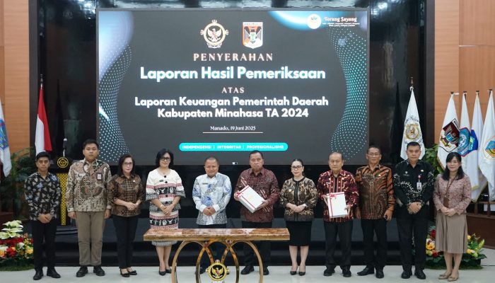 ESN, Manado – Pemerintah Kabupaten Minahasa kembali menorehkan prestasi gemilang dengan meraih opini Wajar Tanpa Pengecualian (WTP) untuk ke-11 kalinya secara berturut-turut atas Laporan Keuangan Pemerintah Daerah (LKPD) Tahun Anggaran 2024.