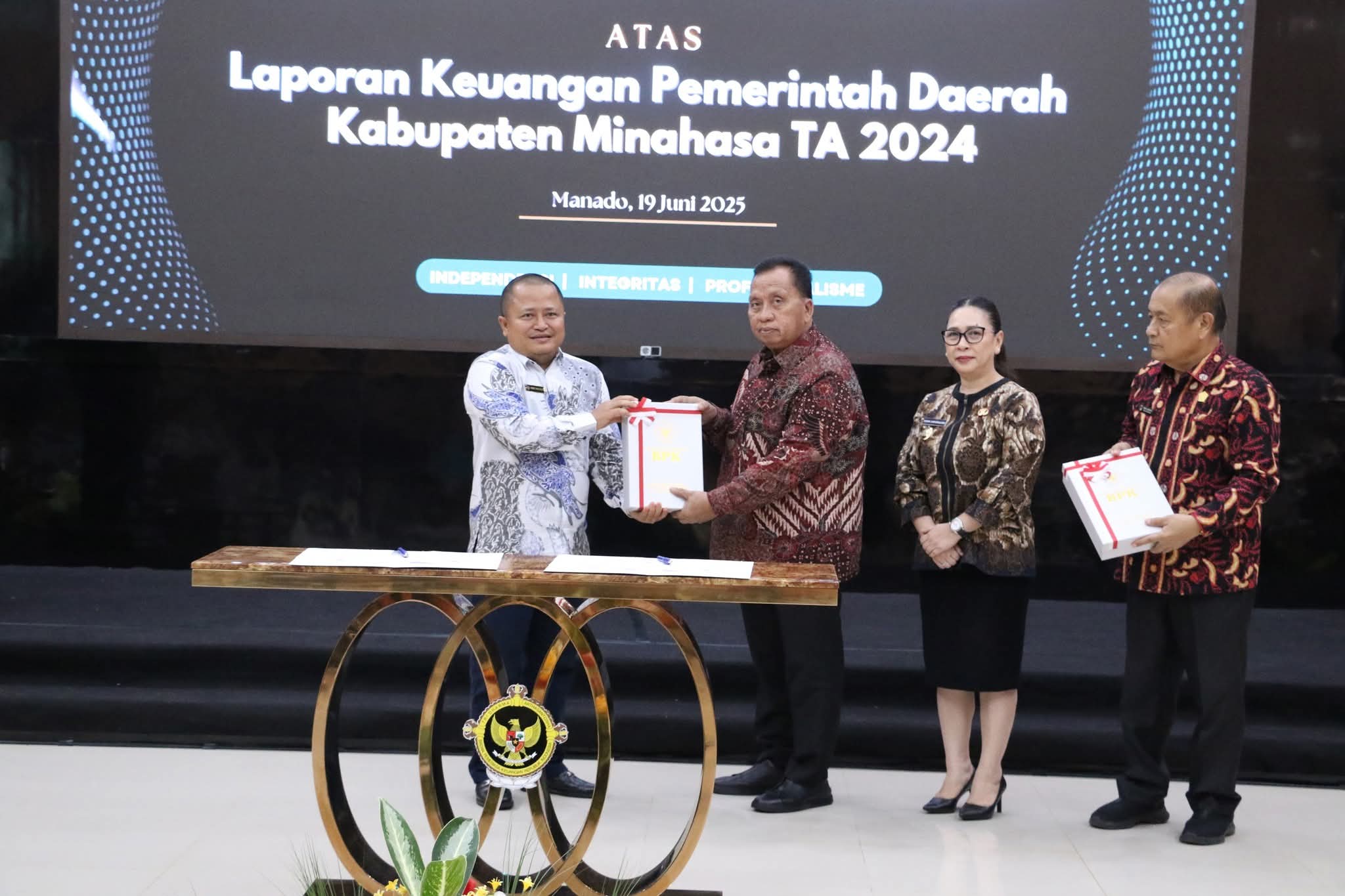Capaian membanggakan ini diumumkan saat acara penyerahan Laporan Hasil Pemeriksaan (LHP) oleh Badan Pemeriksa Keuangan (BPK) RI Perwakilan Provinsi Sulawesi Utara, yang dilaksanakan di Kantor BPK di Manado pada Kamis (19/6/2025). LHP diserahkan langsung oleh Kepala Perwakilan BPK RI Provinsi Sulut, Bombit Agus Mulyo, kepada Bupati Minahasa Robby Dondokambey, S.Si., MAP, yang didampingi oleh Wakil Bupati Vanda Sarundajang, S.S.