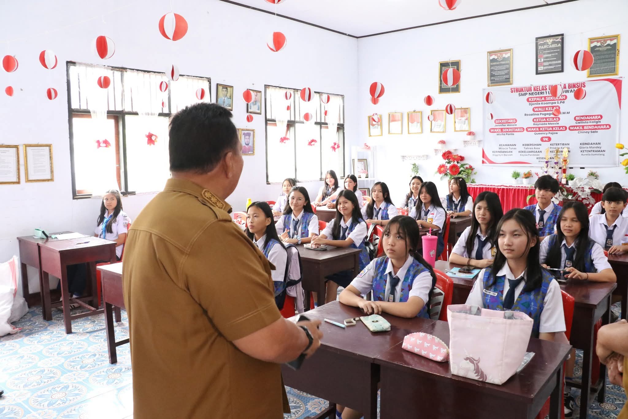 ESN, Langowan – Bupati Minahasa Robby Dondokambey melakukan kunjungan kerja (Kunker) di Kantor Camat Kawangkoan Barat, dilanjutkan ke SMP Negeri 1 Langowan Kecamatan Langowan Barat, Selasa (19/8/2025).