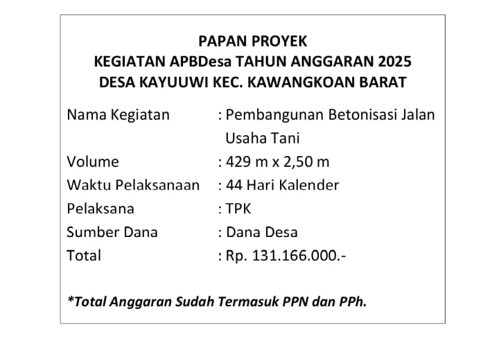 Proyek tersebut dikerjakan oleh Tim Pelaksana Kegiatan (TPK) Desa Kayuuwi.