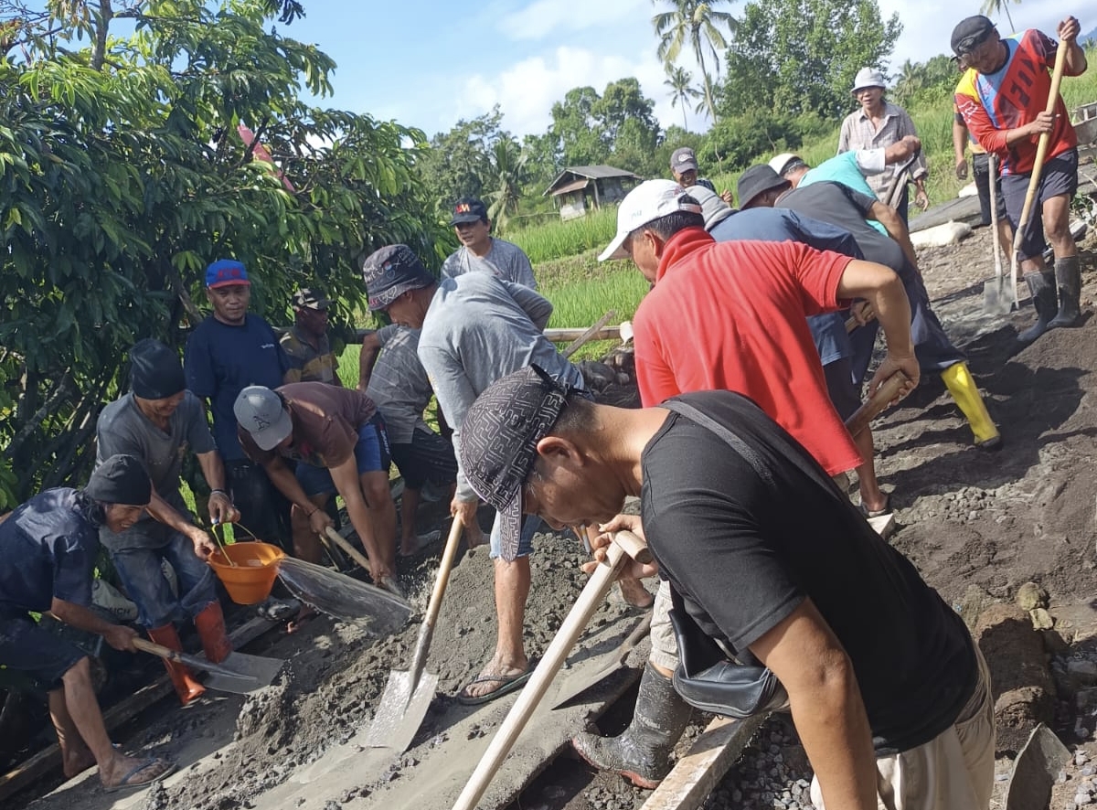 ESN, Kayuuwi – Pemerintah Desa (Pemdes) Kayuuwi terus berupaya meningkatkan infrastruktur desa melalui program betonisasi jalan usaha tani.