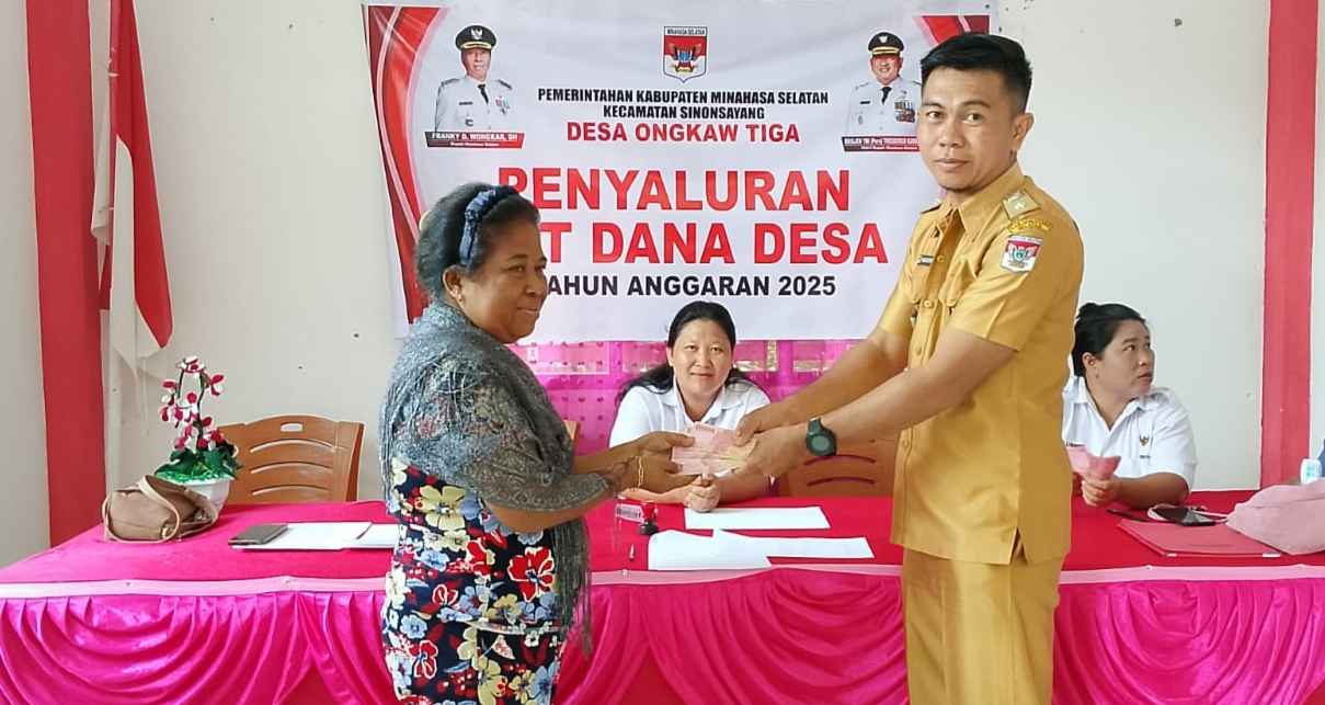 ESN, Minsel – Pemerintah Desa Ongkaw III, Kecamatan Sinonsayang, Kabupaten Minahasa Selatan, menyalurkan Bantuan Langsung Tunai (BLT) yang bersumber dari Dana Desa (DD) tahun anggaran 2025, Selasa (17/6/2025).