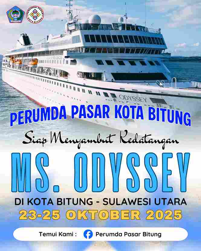 ESN, Bitung — Perusahaan Umum Daerah (Perumda) Pasar Kota Bitung menyambut baik kedatangan kapal pesiar MS Odyssey yang dijadwalkan berlabuh di Pelabuhan Bitung pada 23 Oktober 2025 mendatang. Kedatangan kapal berbendera luar negeri ini diharapkan menjadi momentum positif bagi sektor ekonomi lokal, khususnya bagi pedagang pasar tradisional di Kota Bitung.