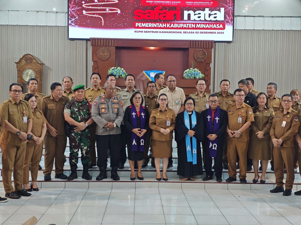 ESN, Kawangkoan – Hari kedua Safari Natal Pemkab Minahasa berlangsung di Gereja KGPM Sentrum, Kawangkoan, Selasa (2/12/2025).