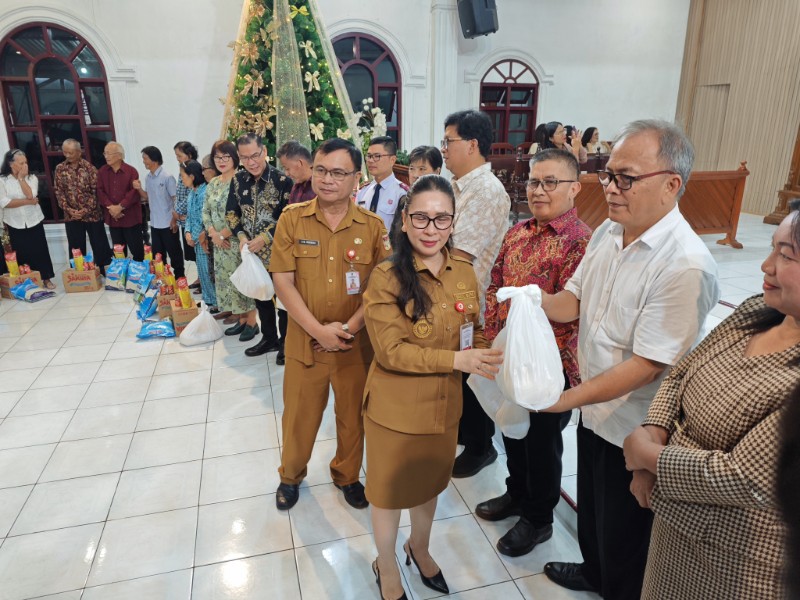 Dalam safari Natal ini, ikut diberikan bantuan sosial berupa bahan pokok kepada sejumlah warga.