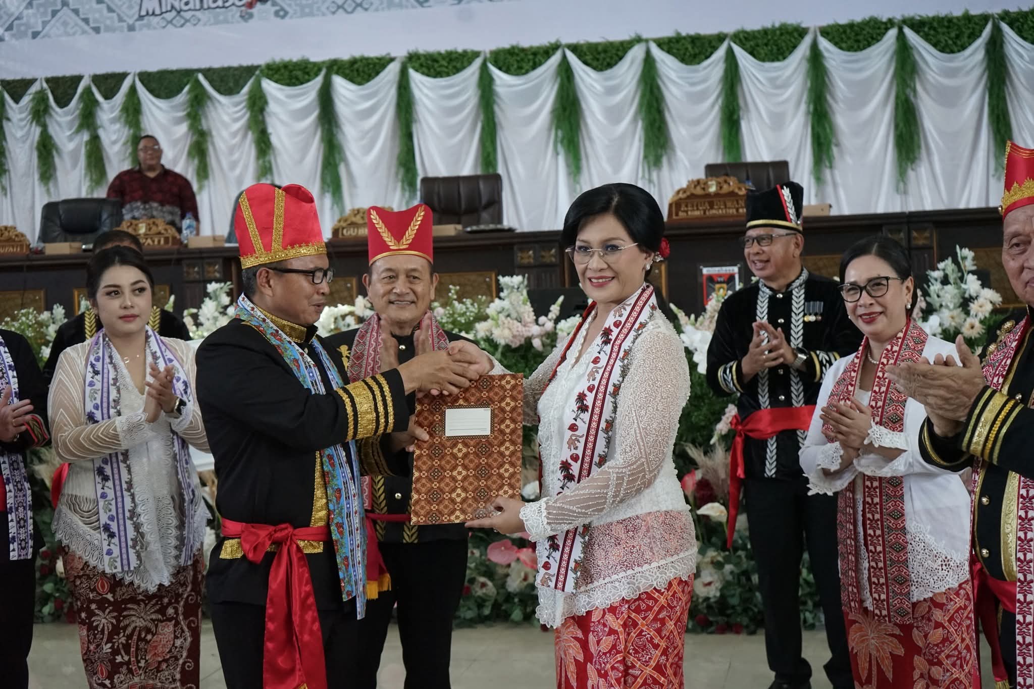 SK itu diserahkan Sekretaris Provinsi Sulut Tahlis Galang, disela rapat paripurna DPRD Minahasa dalam rangka Hari Jadi Minahasa ke-597, Rabu (5/11/2025).