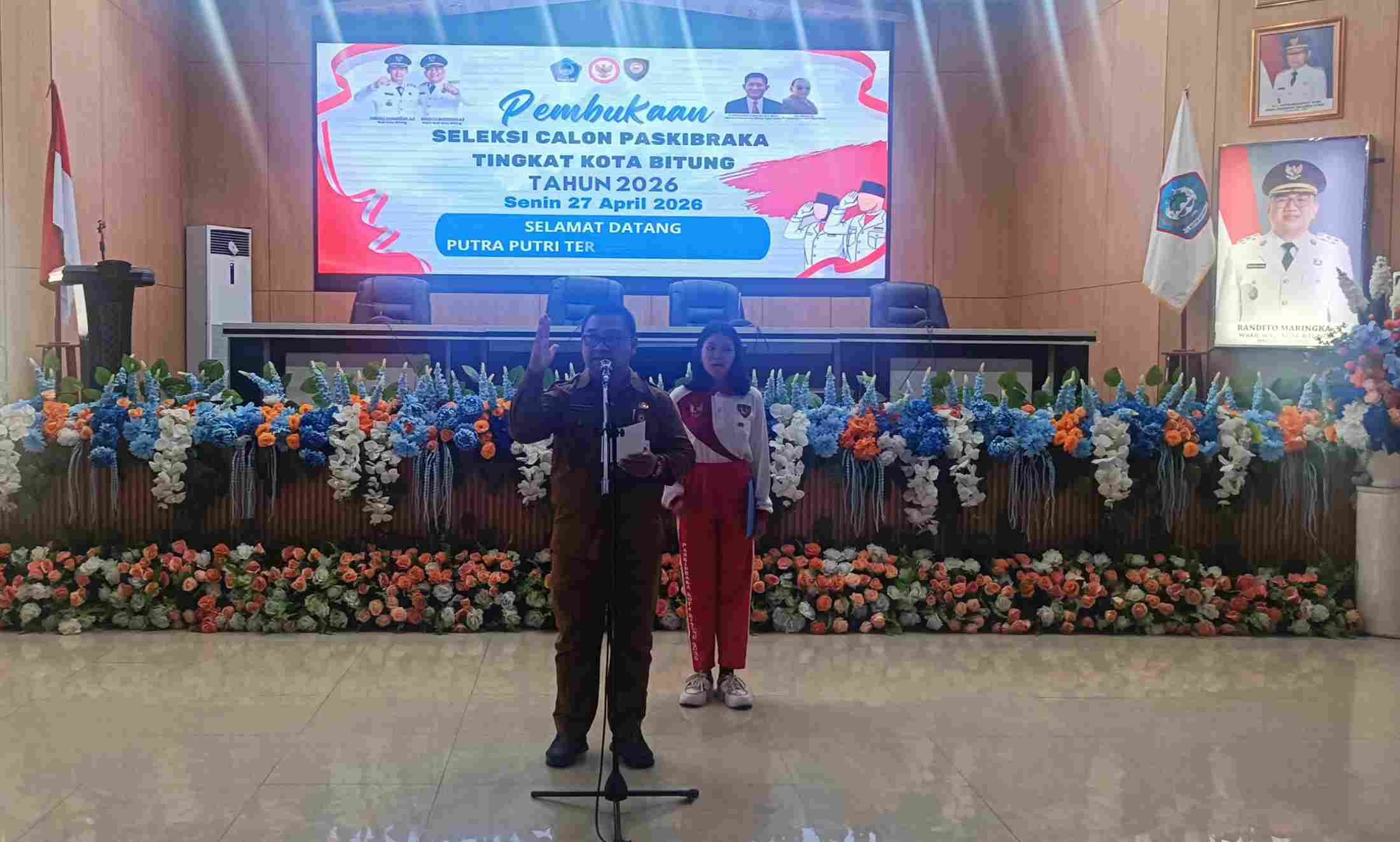 ESN, Bitung – Wali Kota Bitung, Hengky Honandar, SE, melalui Asisten I Setda Kota Bitung, Forsman Dandel, secara resmi membuka kegiatan Seleksi Calon Pasukan Pengibar Bendera Pusaka (Paskibraka) Tingkat Kota Bitung Tahun 2026, yang dilaksanakan di Ruang S.H. Sarundajang, Senin (27/4/2026).