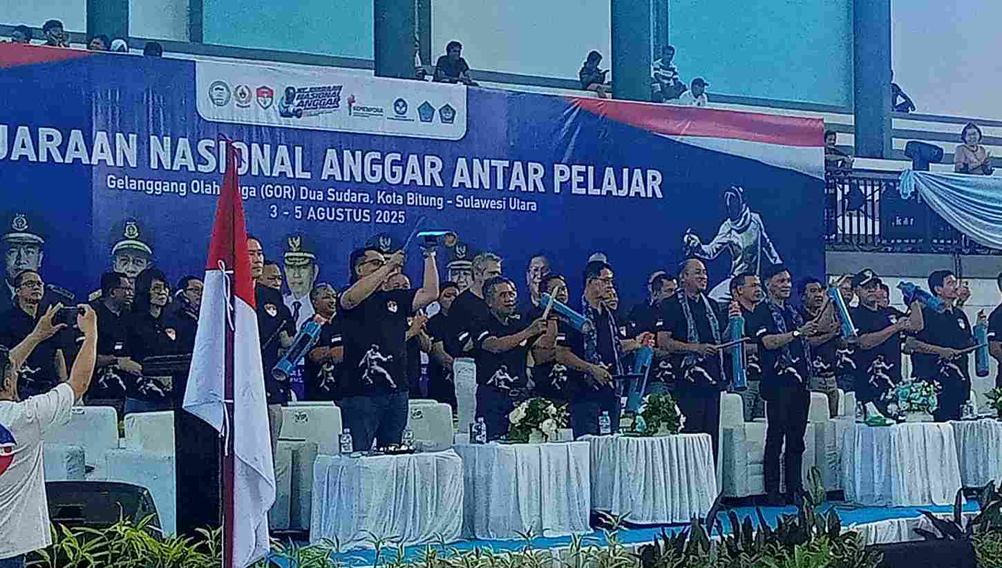 ESN, Bitung – Kejuaraan Nasional (Kejurnas) Anggar Antar Pelajar resmi dibuka di Gedung Olahraga Dua Saudara, Kota Bitung, Minggu, 3 Agustus 2025. Suara kentongan menandai dimulainya ajang bergengsi bagi atlet anggar usia pelajar dari seluruh Indonesia itu.