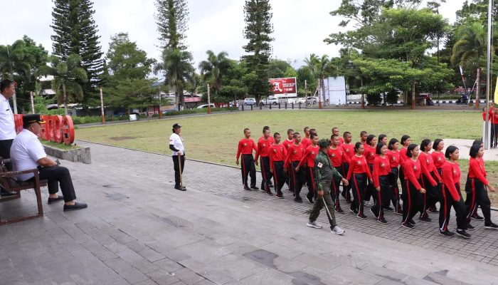 ESN, Tondano – Bupati Minahasa Robby Dondokambey (RD) meninjau latihan yang dilakukan oleh Pasukan Pengibar Bendera Pusaka (Paskibraka) di Lapangan Sam Ratulangi Tondano, Rabu (6/8/2025).
