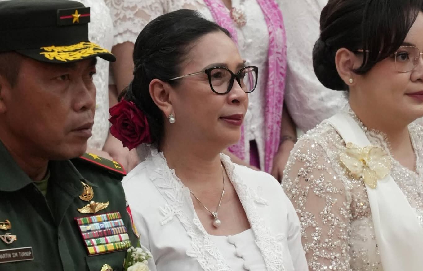 Saat menghadiri HUT, Wabup Vanda tampak menggunakan setelan baju adat Minahasa.