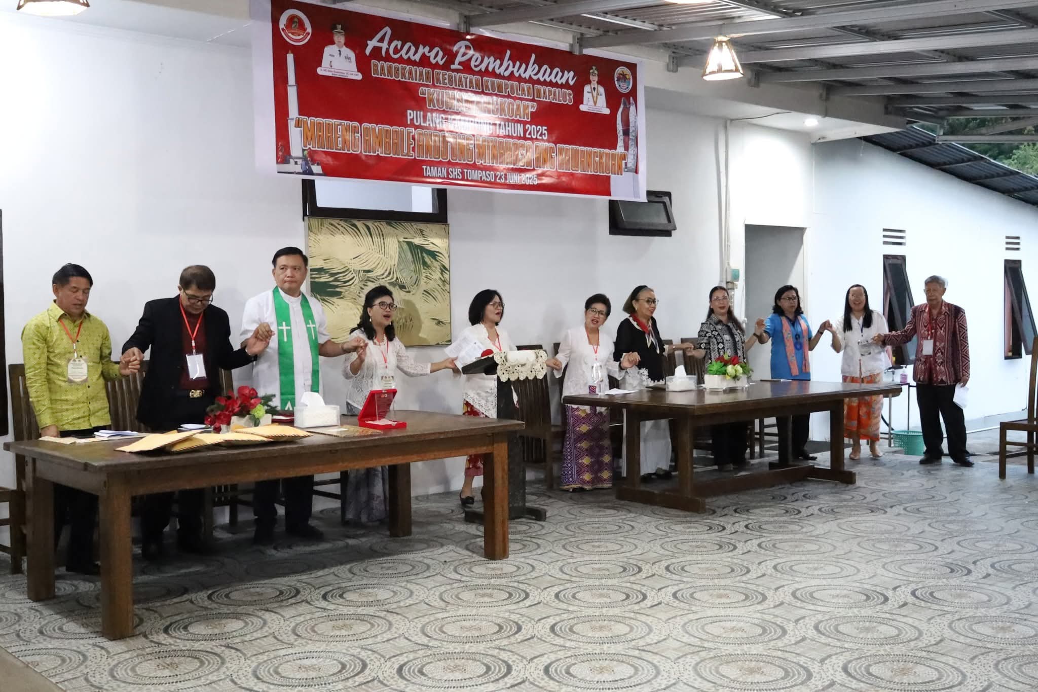 Turut hadir dalam kegiatan ini sejumlah tokoh dan pengurus Rukun Mapalus Kumawangkoan, diantaranya Badan Penasehat Ir. Ramo Sumolang, Ketua Umum DPP Kumawangkoan Hentje Liow, Badan Verifikasi Kumawangkoan Ventje Laloan, Ketua Panitia Pelaksana Oldi Sekeon, Ketua Panitia Jefry Tamboto, serta Kapolsek Tompaso IPDA Langi.